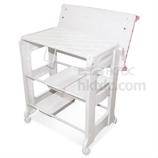 this 2-in-1 bath and change station is made of sturdy materials and set on casters to be moved into any room.