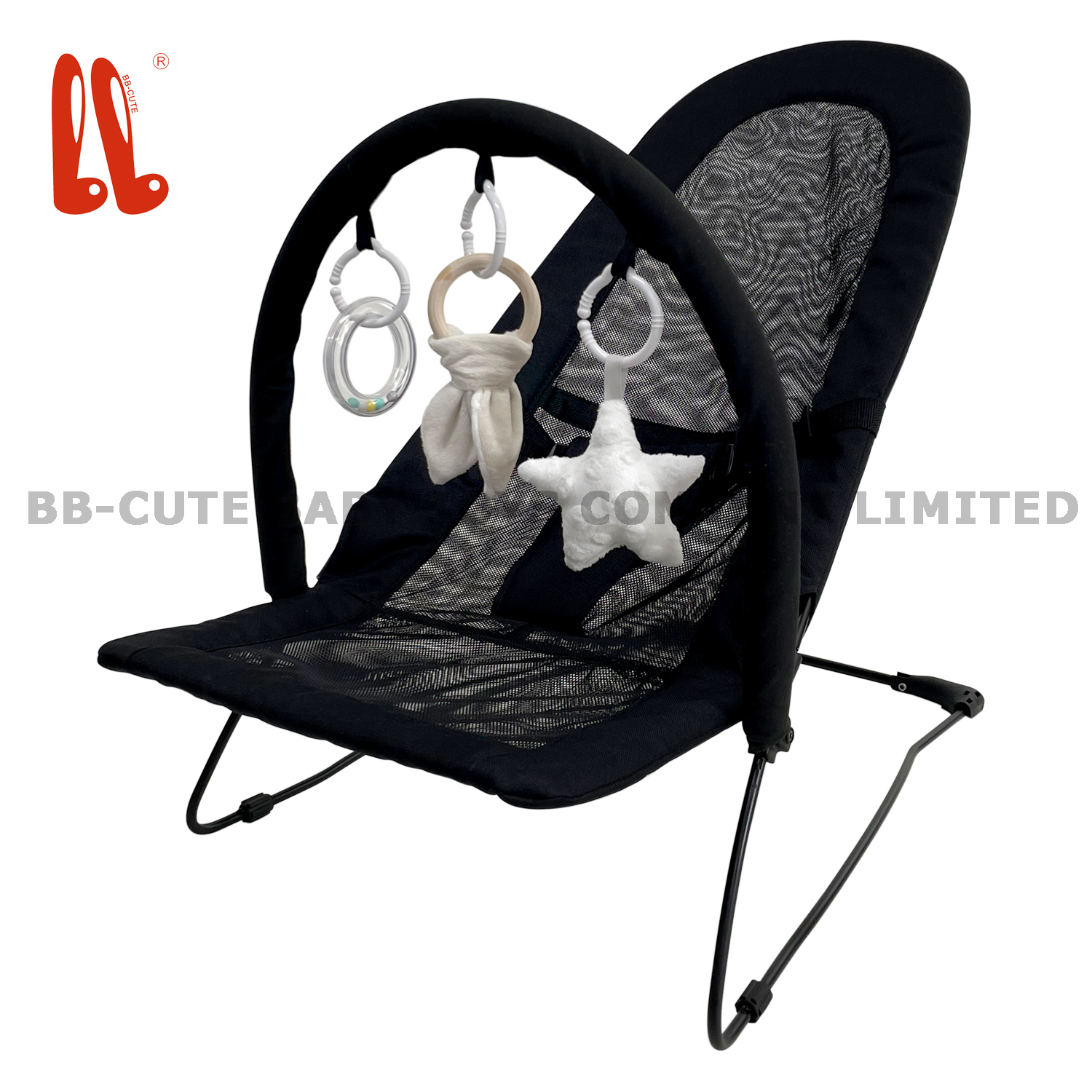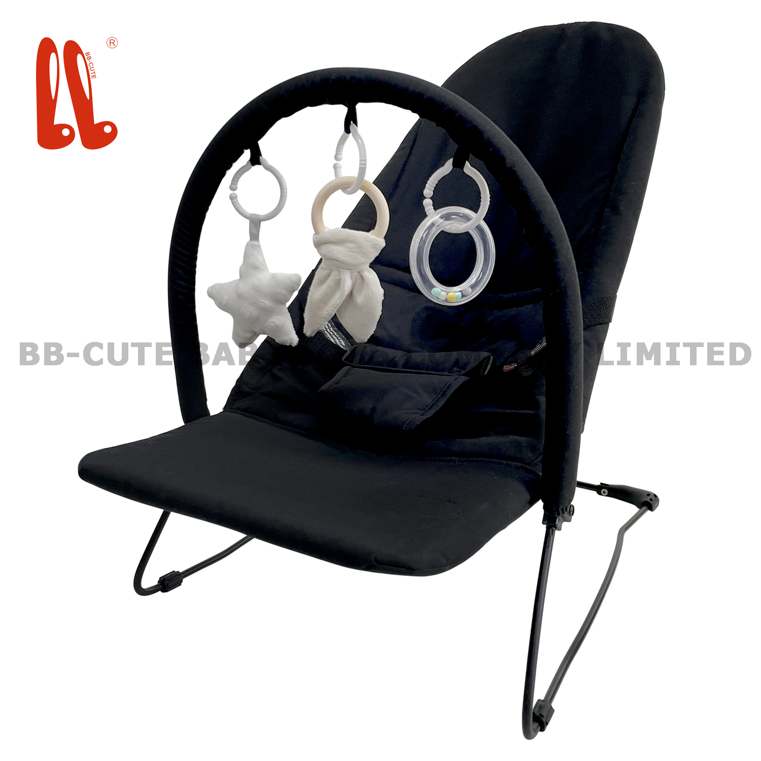 The baby bouncer is a fun-filled and comfortable accessory designed to keep the baby entertained, relaxed and secure. It features an openable toy bar with three movable and adorable toys, attracting babies’ attention and stimulating their senses. The toy bar is designed to be openable, which is convenient for parents’ access.