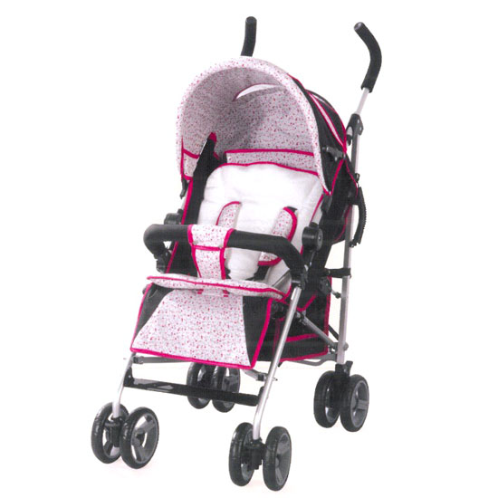 This is a baby buggy coming with a small floral pattern in red. The four sturdy wheels guarantee smooth movement and a long service life. It is a perfect companion for mothers to bring their babies to travel anywhere.