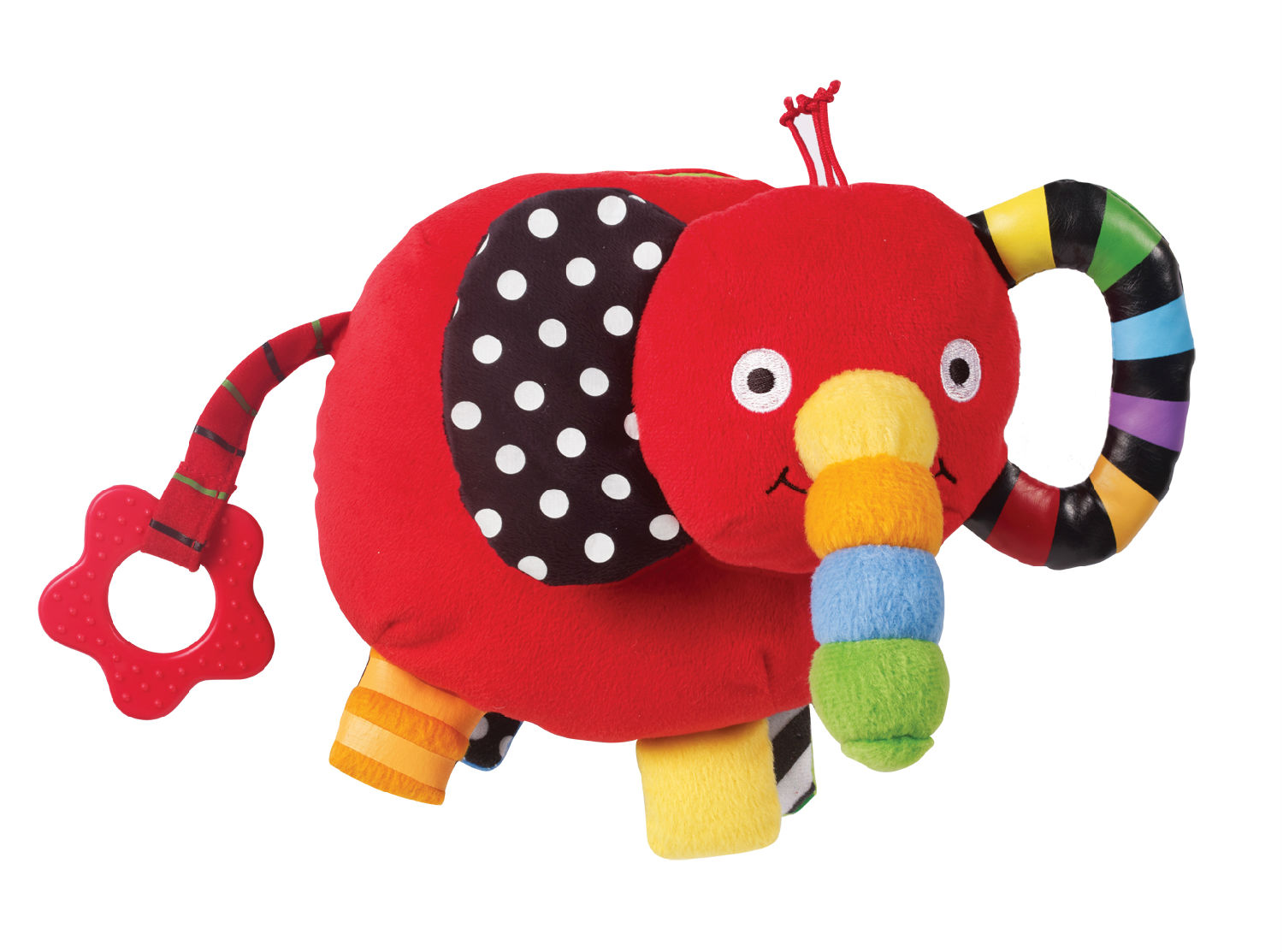 - A cloth book designed to stimulate the senses by offering funny sounds and varied textures hidden in every corner of an elephant.
