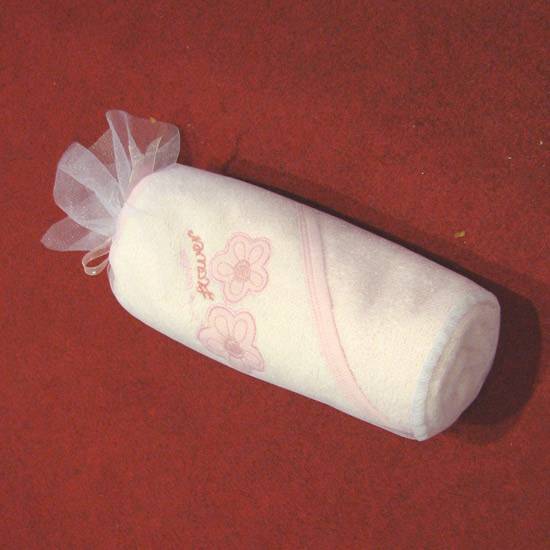 This is a baby blanket suitable for children aged 2 or above. It is pink in colour and has a cute flower design, making it especially suitable for girls. The blanket can be rolled up and stored conveniently in a bag.