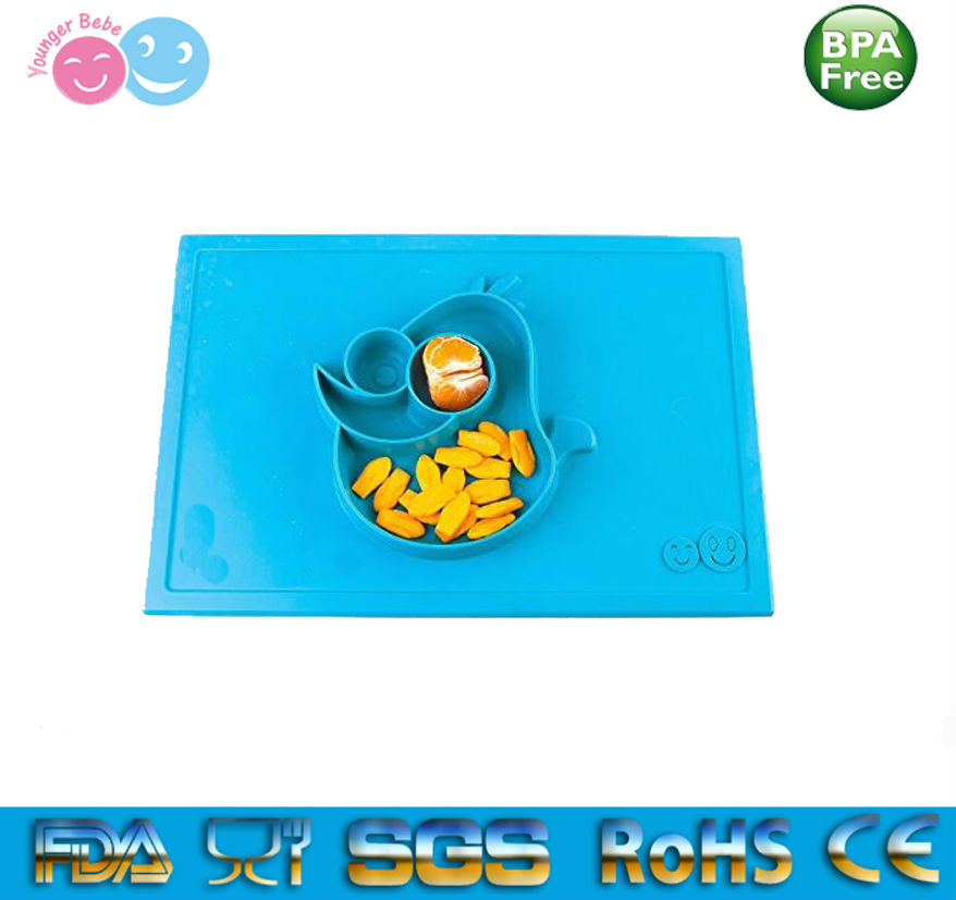 Baby Infant Feeding Bird Design Baby Placemat Silicone Suction Divided Plate