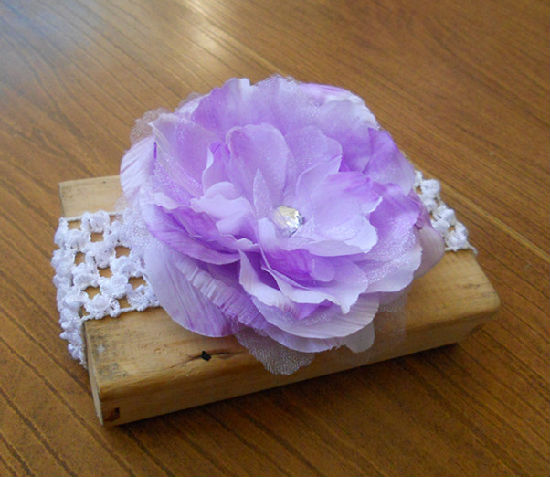 Baby Peony flower headband pink colors diamond was sewn by hand can pass the small part test very safe for the baby