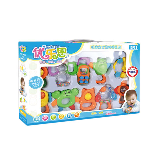 This 10-in-1 rattle box set is an ideal gift choice for any baby. The diversified designs in bright colors are visually pleasant. Finely made of food-grade materials, these rattles are absolutely safe for babies.
