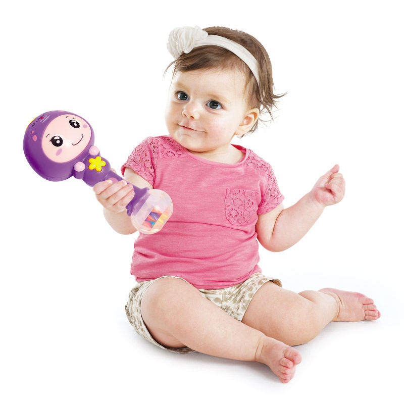 Keep your young one engaged and amused with this baby rattle. The stick-like select comes in just the right size for shaking, featuring colorful beads inside its milky globe finish and creating pleasant rattle rounds. It enhances babies’ eye, hand and ear coordination in an effortless demeanor.