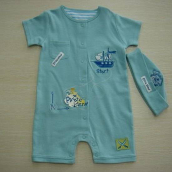 This short-sleeve baby romper features a button closure for the convenience of diaper changing. The round-neck design gives your baby extra comfort. It also comes with a baby hat to give the baby additional warmth and protection.