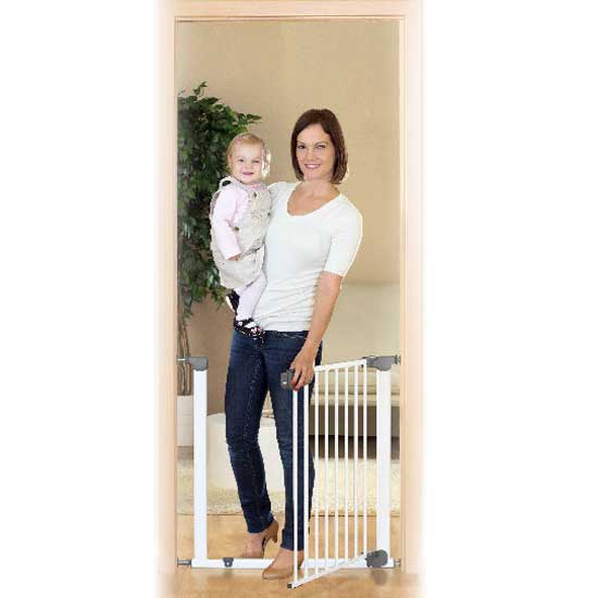 This high-quality pressure mounted gate protects your baby while you are temporarily away. After your baby has been placed inside the gate, the gate closes and locks itself automatically. The well-designed gate can be installed without drilling and screwing.