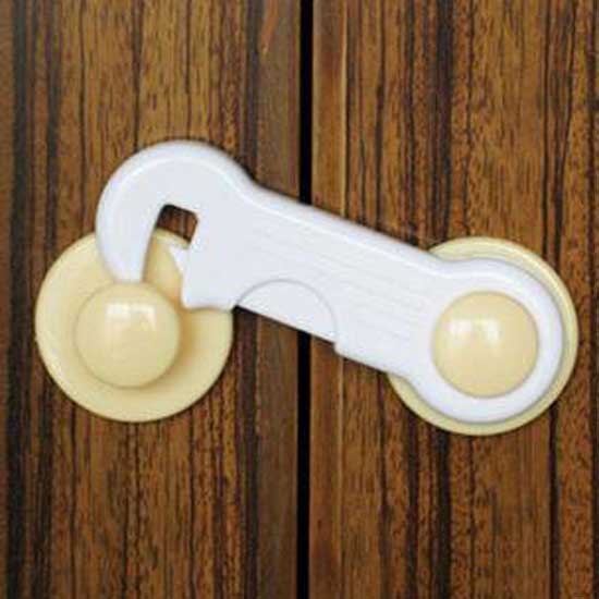 This baby safety lock in white and light yellow is meticulously crafted with sturdy construction. It is to be installed on the knobs of cabinet doors. The simple yet practical cabinet lock is suitable for households with children.