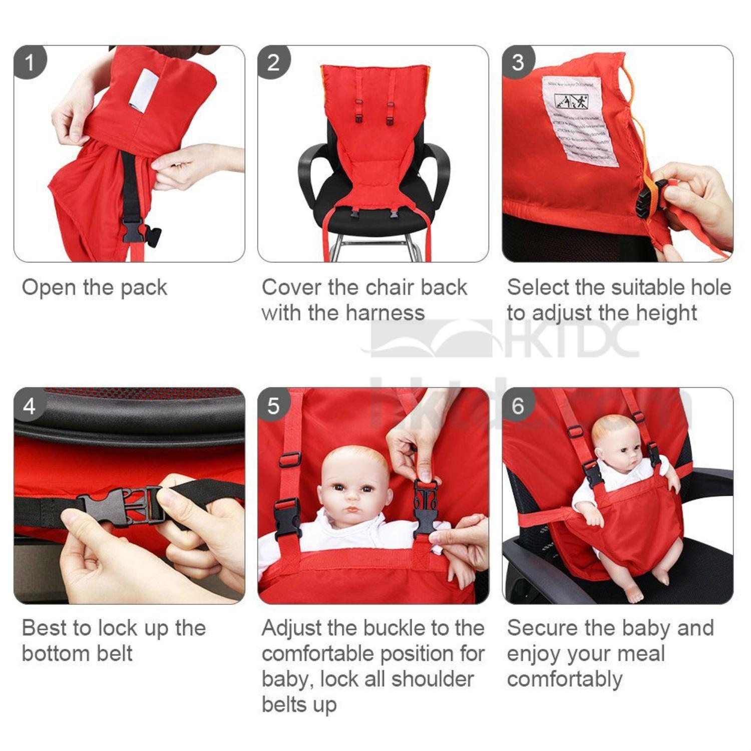 - Safety Seat Harness turns a normal chair to a safe and practical BB highchair instantly