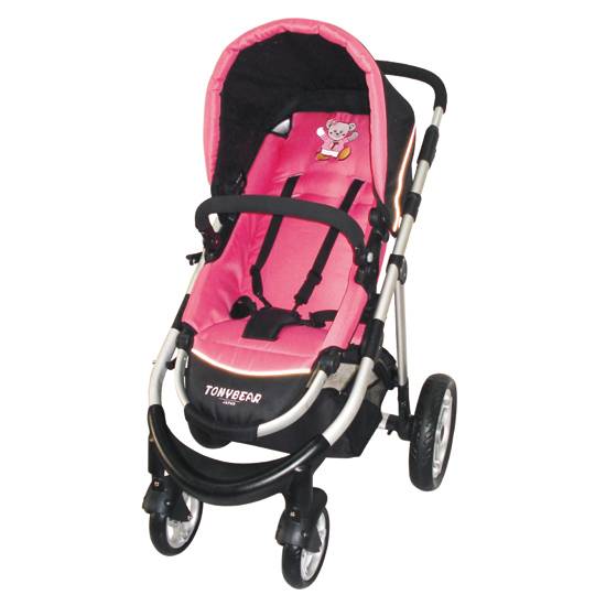 This is a pram with a canopy and a 3-position handle. Moreover, it has a 3-position reclining backrest, also designed with seat bell and bar, and an adjustable footrest.