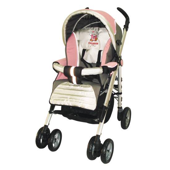 This is a pram with a four-layer canopy. Moreover, it has a five-point safty harness and detachable front bumper, and an adjustable footrest.