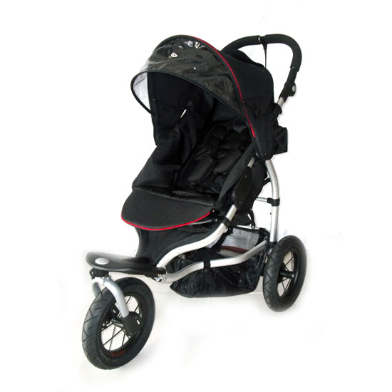 This pictured baby stroller is equipped with strong and sturdy air wheels. The wheels help to absorb shock and support the stroller steadily. The padded seat offers extra comfort to your little one anytime.