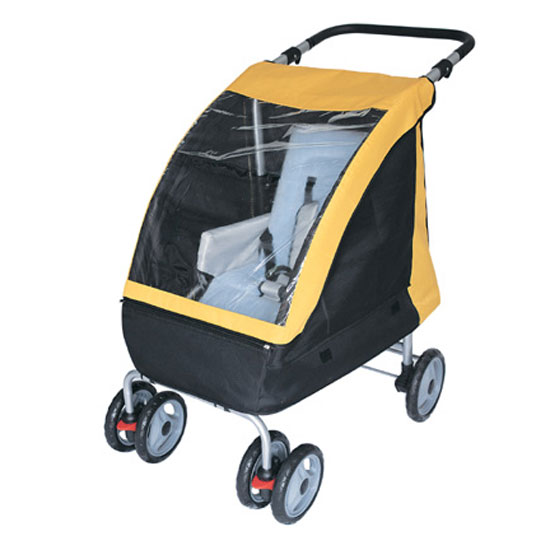 Photographed is a baby stroller with suspension front wheels that can move in every direction. The full-cover canopy blocks harmful sunlight from reaching your baby. The baby stroller makes a great carriage for you to go out with your beloved little one.