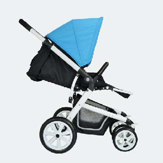 Displayed is a baby stroller that comes in a brand new design with a removable canopy. The backrest features 4 positions while the height can be adjusted in 3 levels for comfortable traveling. The seat can also be fit in a car seat.