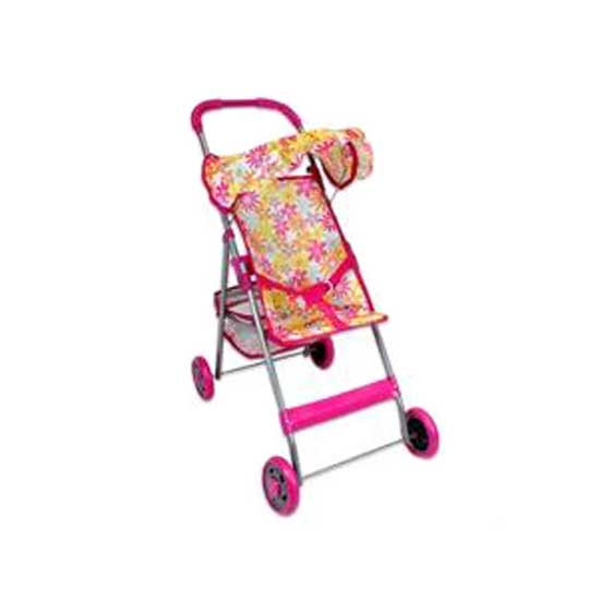 This is a baby stroller that comes with colorful floral patterns. This robust baby stroller is designed with four wheels for easy moving around. The buckle guarantees the baby's safety at all times.