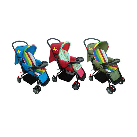 This luxury baby stroller is a great choice for newborn babies. It features a super durable frame with a reversible handlebar for added utility. This stroller has a big sun canopy, a practical bottom basket and a soft seat.