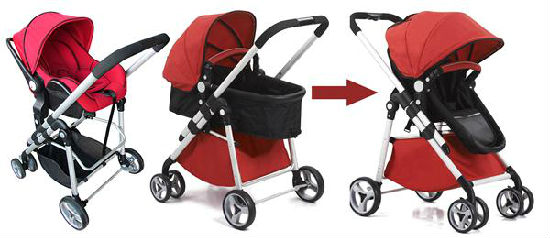 Light weight aluminum baby stroller, can be changed into carrycot, can adapt for a car seat