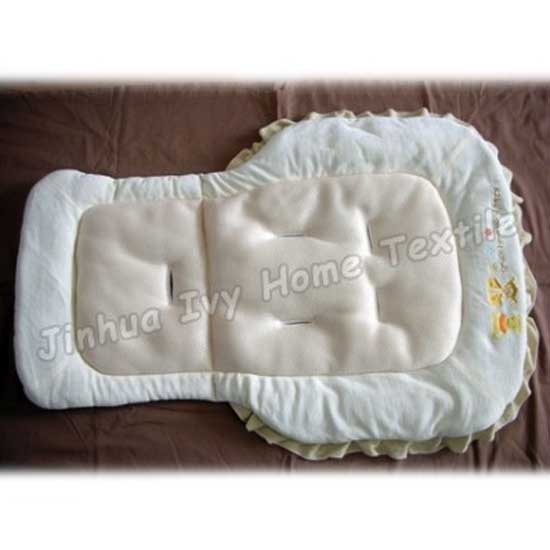 This baby stroller cushion promises gratifying lying comfort. It is designed with multi-colored embroidery and frills for extra style. This simple yet practical stroller cushion allows your baby to sleep tight even when traveling.