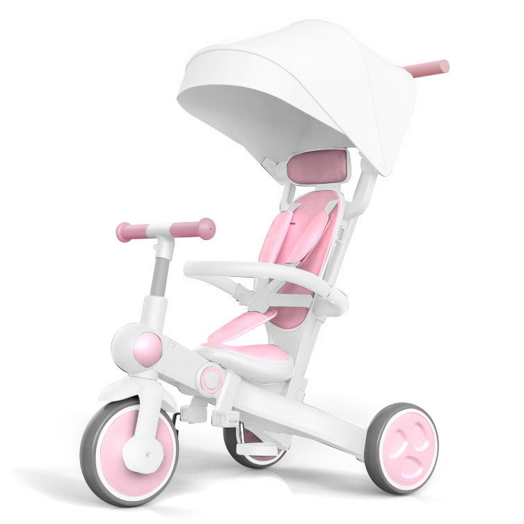 A versatile 4-in-1 push tricycle designed to match various usage scenarios. This flexible can be adjusted into a tricycle stroller, balance bike, push tricycle, and pedal trike, which is convenient and practical. Comes with a soft saddle and backrest, this product can guarantee optimal comfort and safety for the little one.