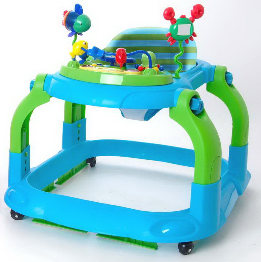 The baby walker goes well with its sharp pink colors. The ocean-themed toys on the front are constructed with music, greatly enhancing the fun for your kids. You can adjust the height of this baby walker with the four supporting poles.
