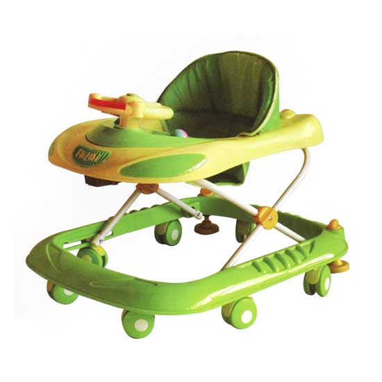 This baby walker in green and yellow features a steering wheel design on the front tray. It is fitted with various durable wheels for easy moving. This brisk baby walker is ideal for your little one.