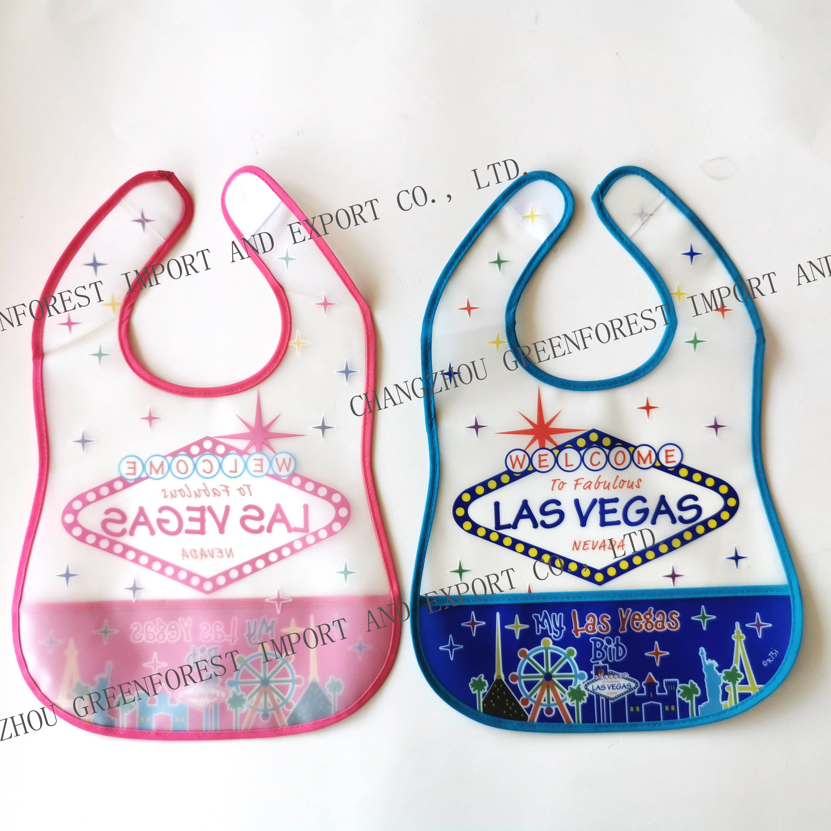 Plastic baby bibWaterproof baby bibSize: 38*25.5cmMaterial: PEVA12pcs/polybag; 360pcs, 52*39*30cm, 12.1kgsWe offer 100% cotton baby bib/ peva baby bib/ polyester+tpu baby bib