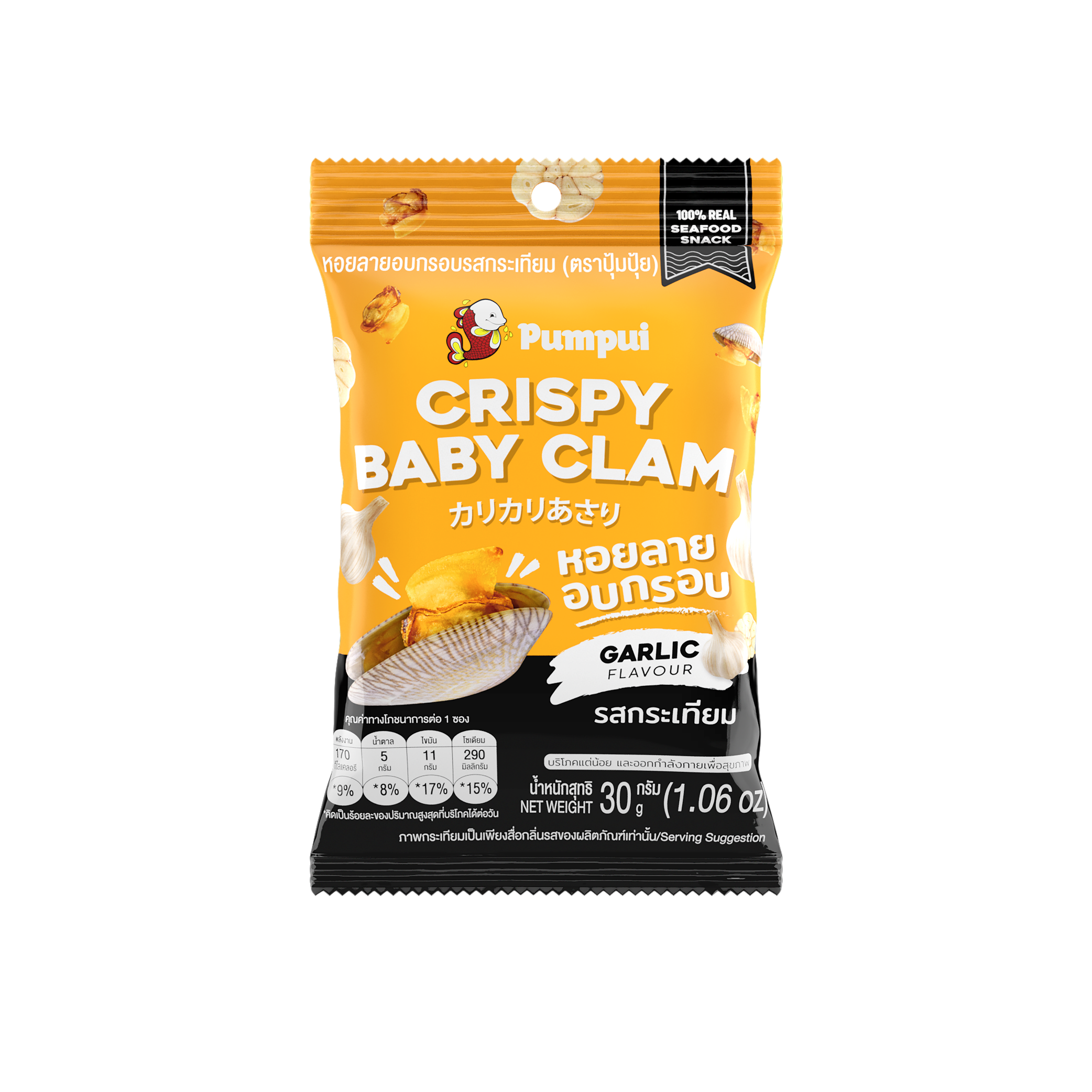 Innovative seafood snacks of using baby clam. It is goods for pairing with drinks or sprinkle on your dishes for more tasty.