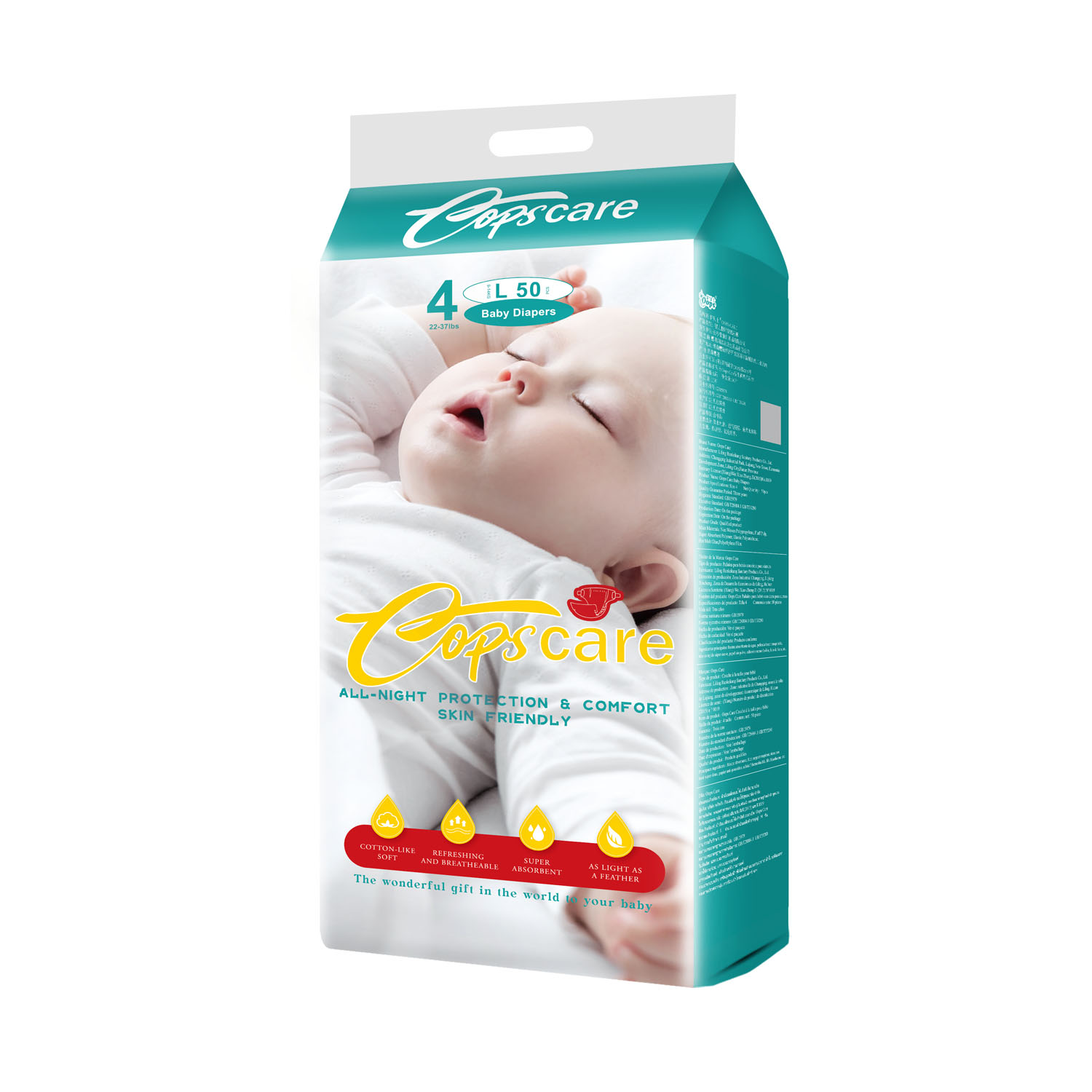 4, The absorbent core uses the latest 5-layer technology, containing fluffy pulp and highly absorbent Yingzi, which better locks in water and provides a drier surface.
