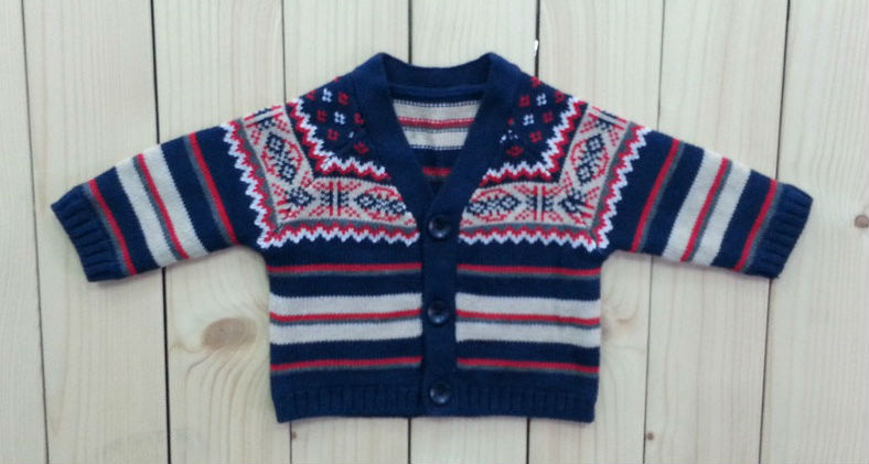 Style up your little gentleman with this classic knitted jacquard cardigan. This chunky computer-knit cardigan in soft cotton is patterned with multi-colored strips and festive patterns to keep your boy stylish and warm. The elegant V-neck and front button-up opening complete the cardigan to be an easy-to-match piece for the autumn season.