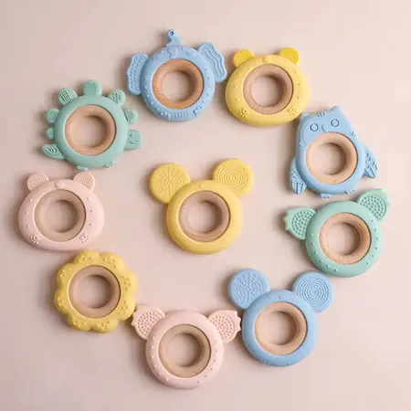 | Product Name | 2023 New BPA Free Colorful Animal Shape Baby Chew Toy Teether Wooden Silicone Teething Ring Toys Baby Teether | |