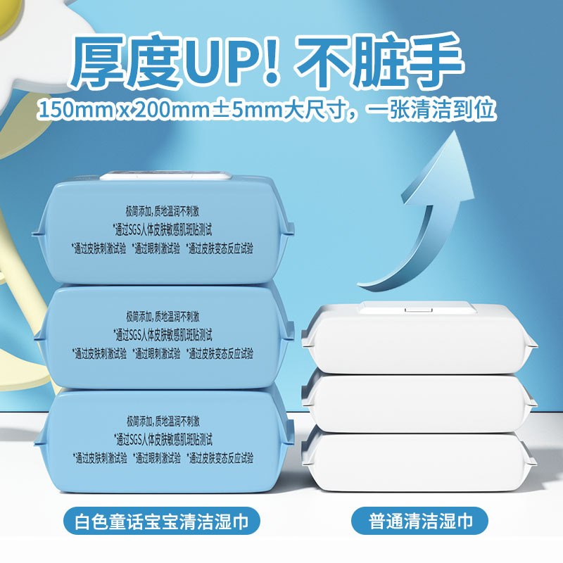 Our baby cleaning wipes are crafted with ultra-pure, fragrance-free formulas, ensuring a gentle and non-irritating clean for your little one. Each wipe is thickened and plush, measuring a generous 150mm × 200mm (±5mm)—large enough to tackle messes in one swipe, keeping hands clean and mess-free.