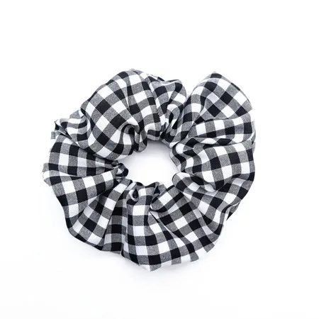 As shown is a high-fashion black and white style lady hair scrunchy.