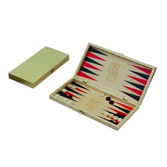 Featured is a backgammon set with a wooden case in a polished finish. The compact size allows it to be easily carried when you are traveling. The board game set is available in different sizes for your options.