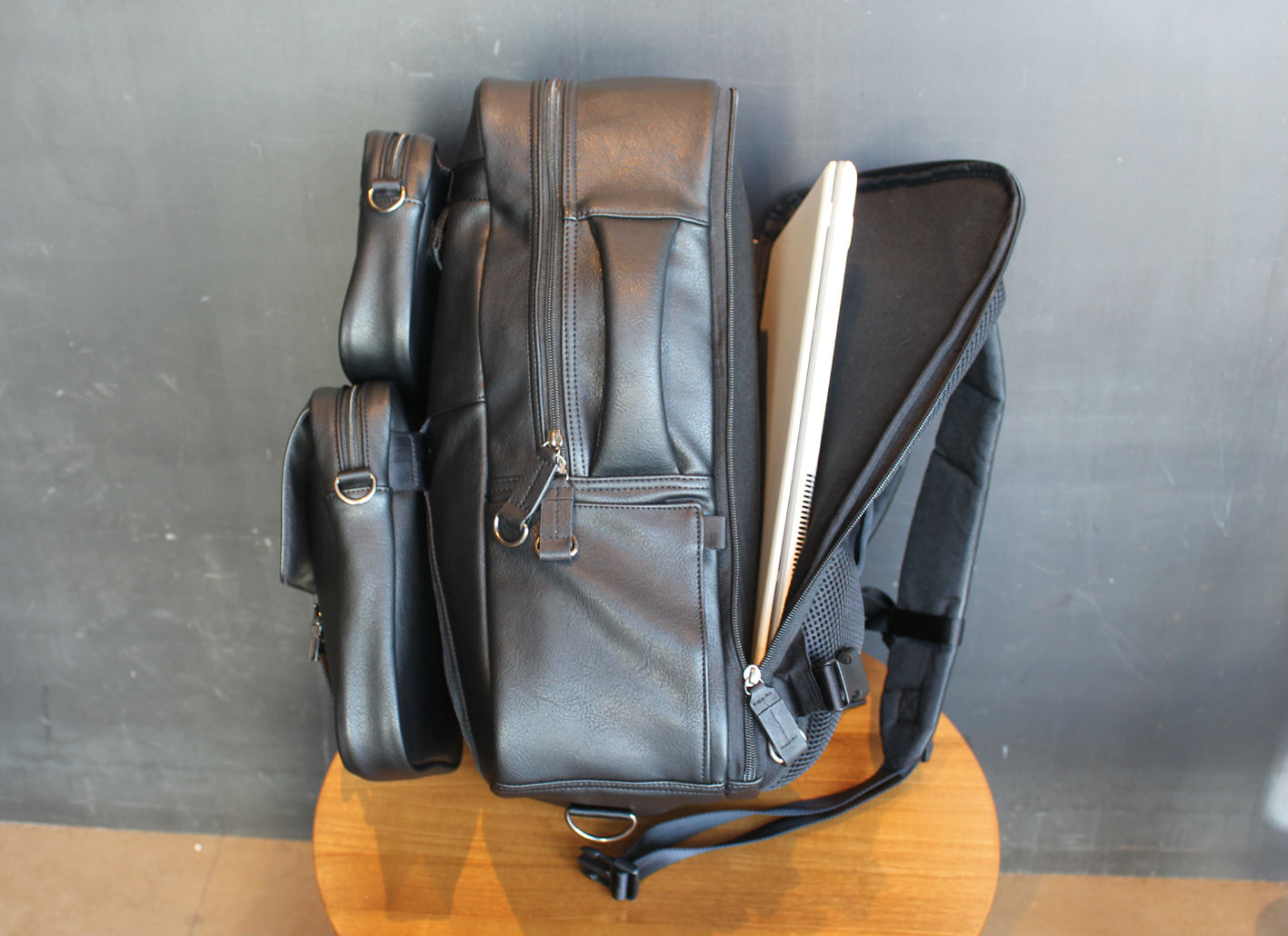 • Briefcase-style backpack.