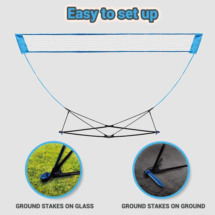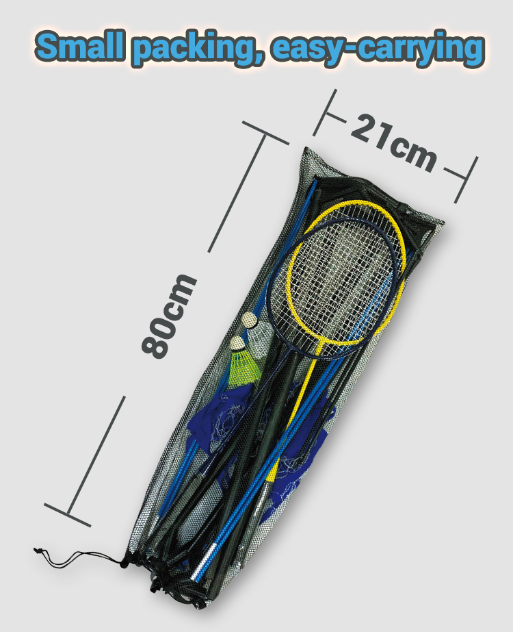1xStandard, 1xNet Bag, 2xRackets, 2xShuttlecocks, 2xMetal Ground Stakes.