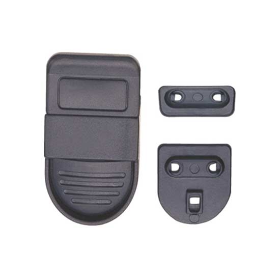 Featured is a plastic buckle designed for fastening bags. The buckle allows easy unlocking by simply one press. The holes at the end of the buckle make it easy to install.
