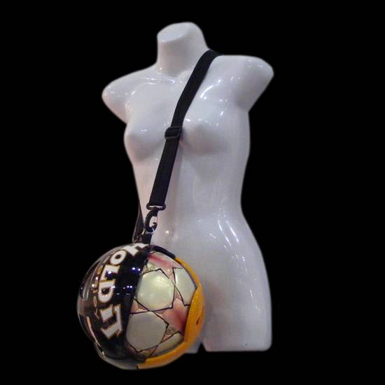 This is a ball carrier suitable for football and basketball. The carrier features an orange and black design. It is attached with a black strap for bearing.