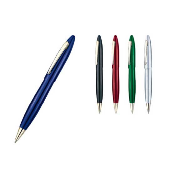 This is a ball pen with an elegant and stylish appearance. It is designed in a sleek and compact size for easy storage. The pen features a round pen barrel with a pocket clip for added convenience.