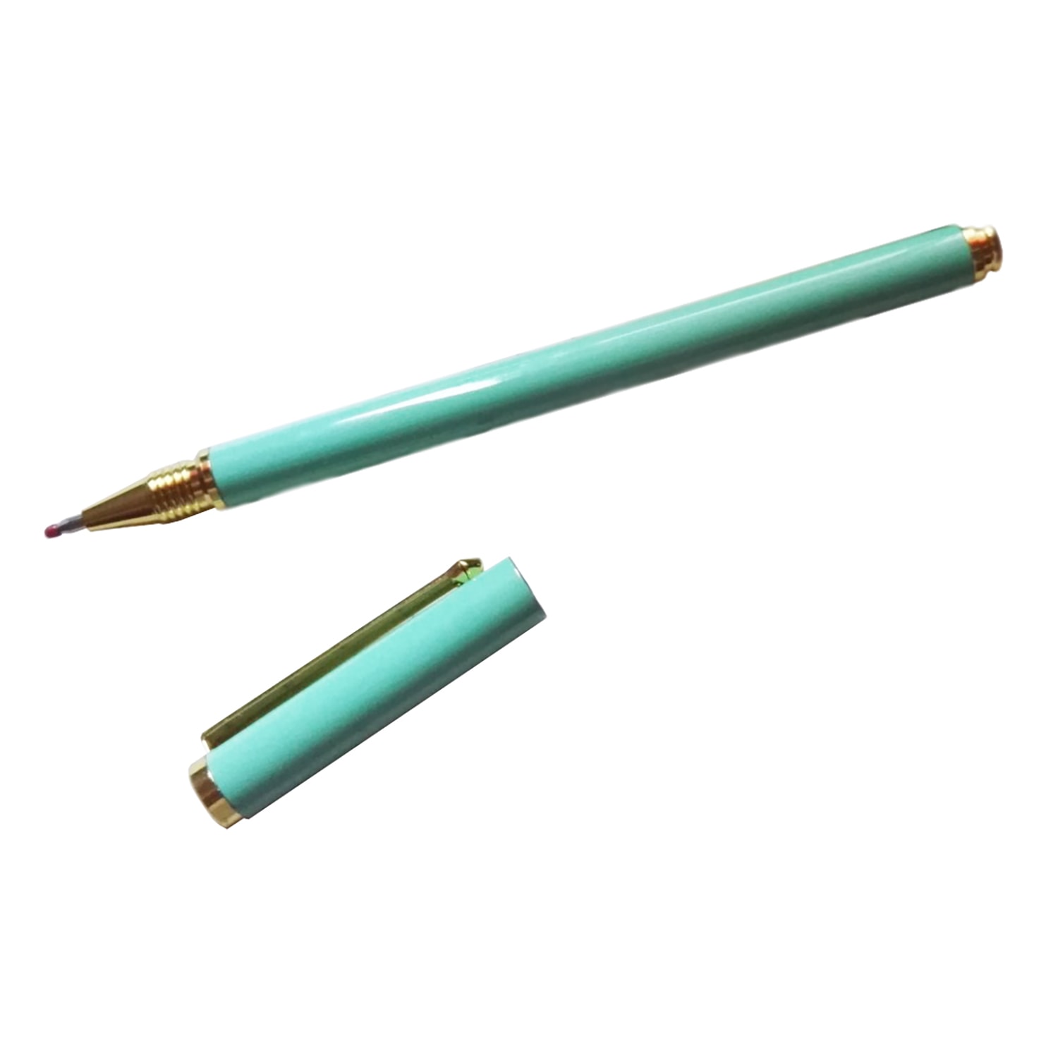 This ball pen has a metal tip with a plastic handle and is convenient to write with. It has a protective cap for covering the tip and has a durable pen clip for attaching to bags or pockets. The pen flaunts a stylish and classy design and is excellent for using as a gift.