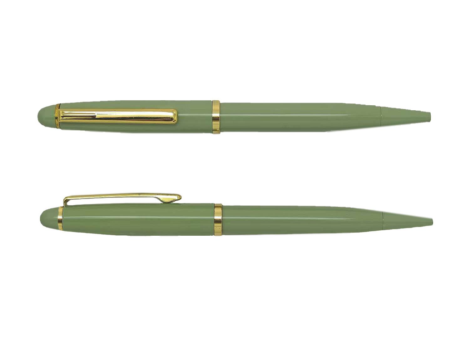 Customized Hotel Pen, twist-action metal Ball pen with black body, Glossy golden plated metal fittings. The net weight is 35 gr.