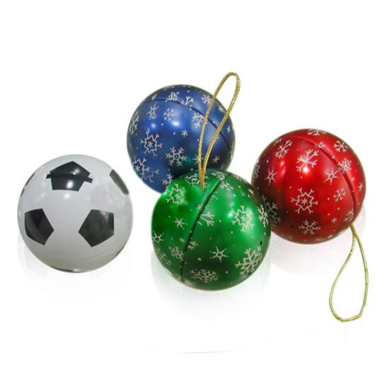 The ball shaped tin container is available in red, green and blue colour. There is professional printing and molding on various container. A little cord is attached on top of each tin ball.