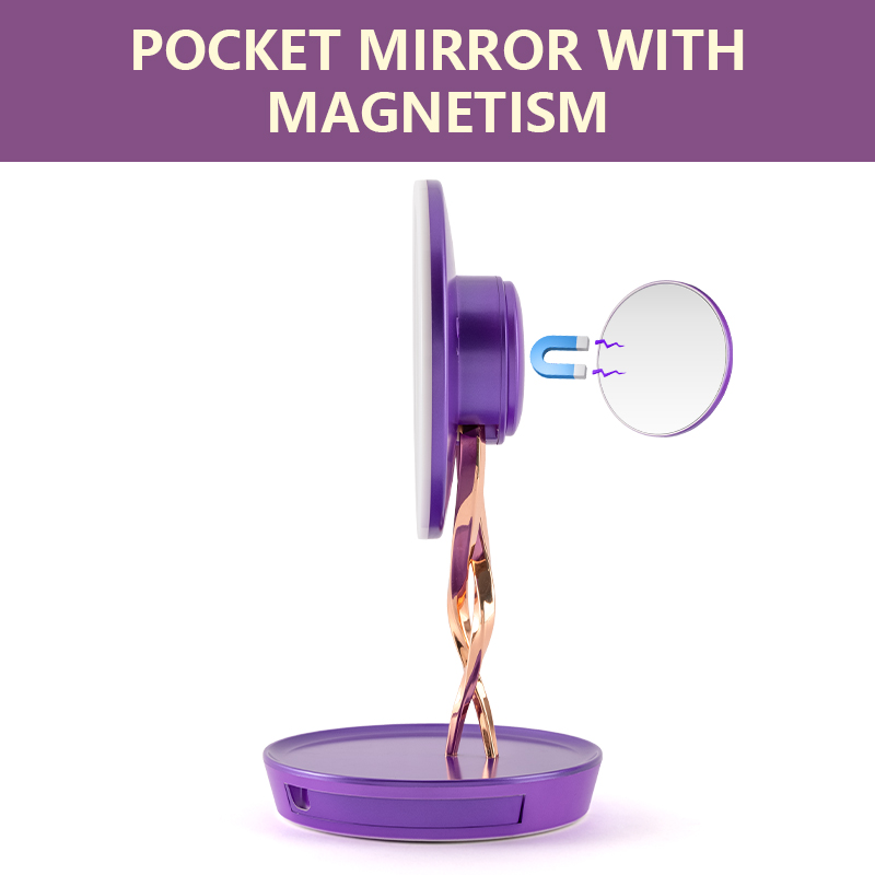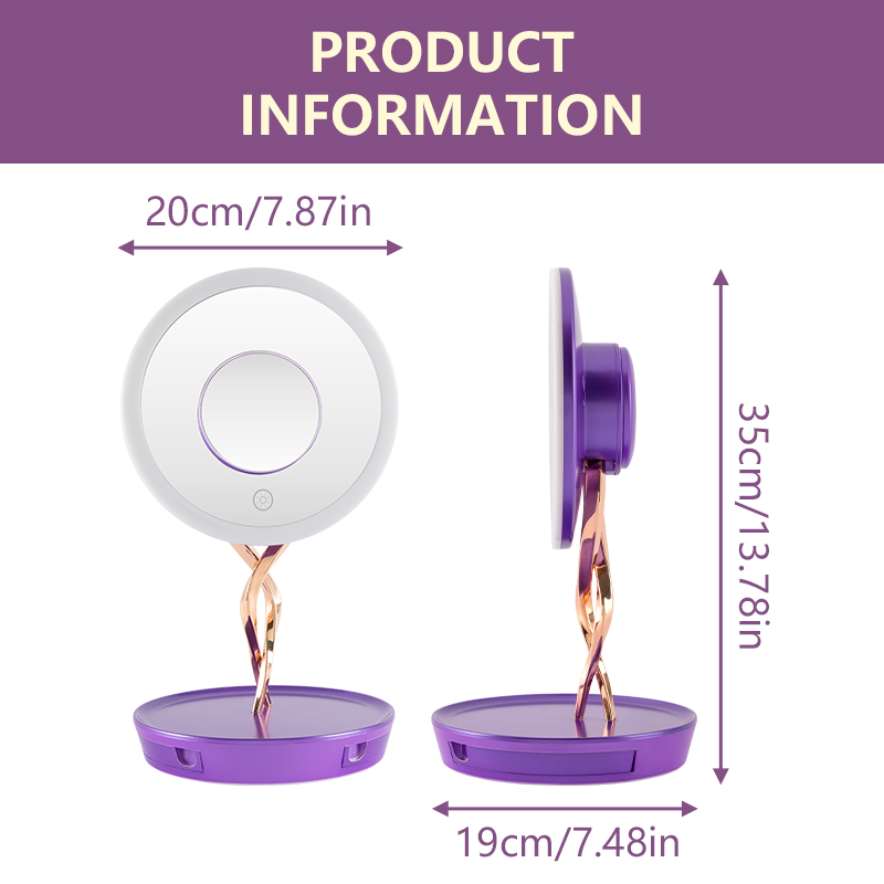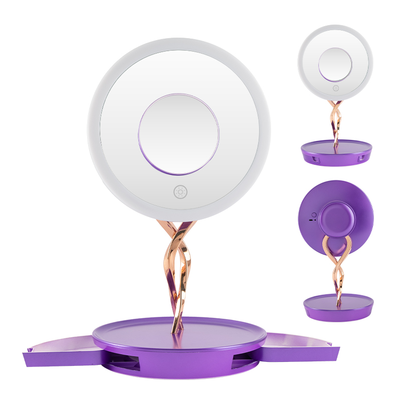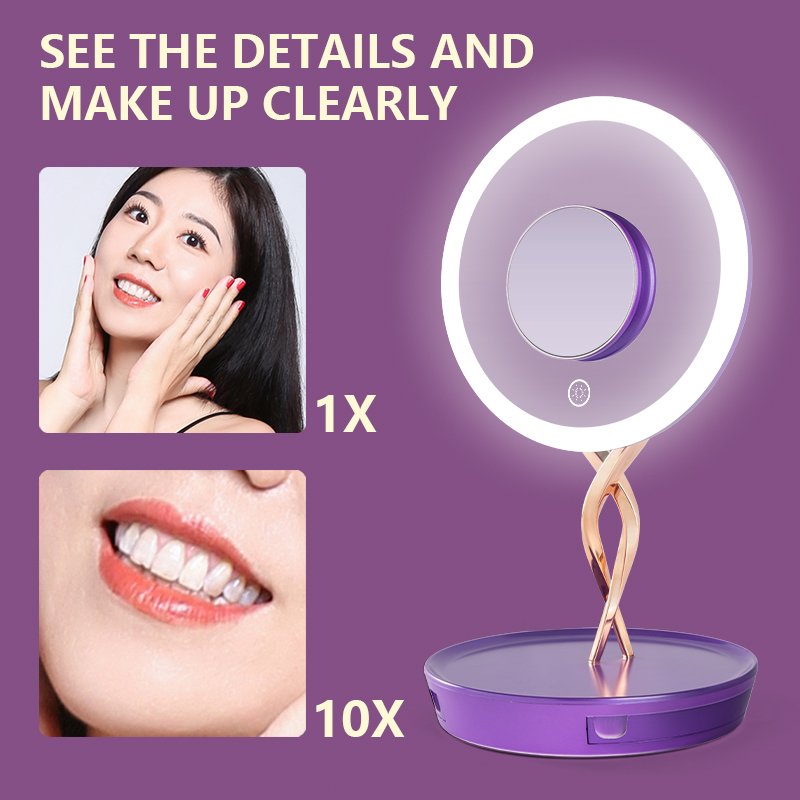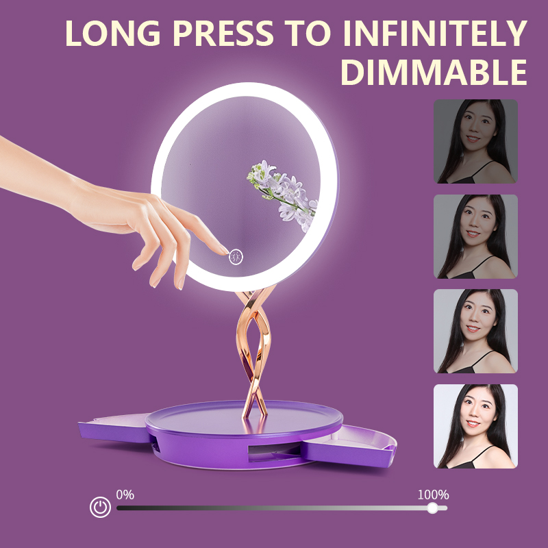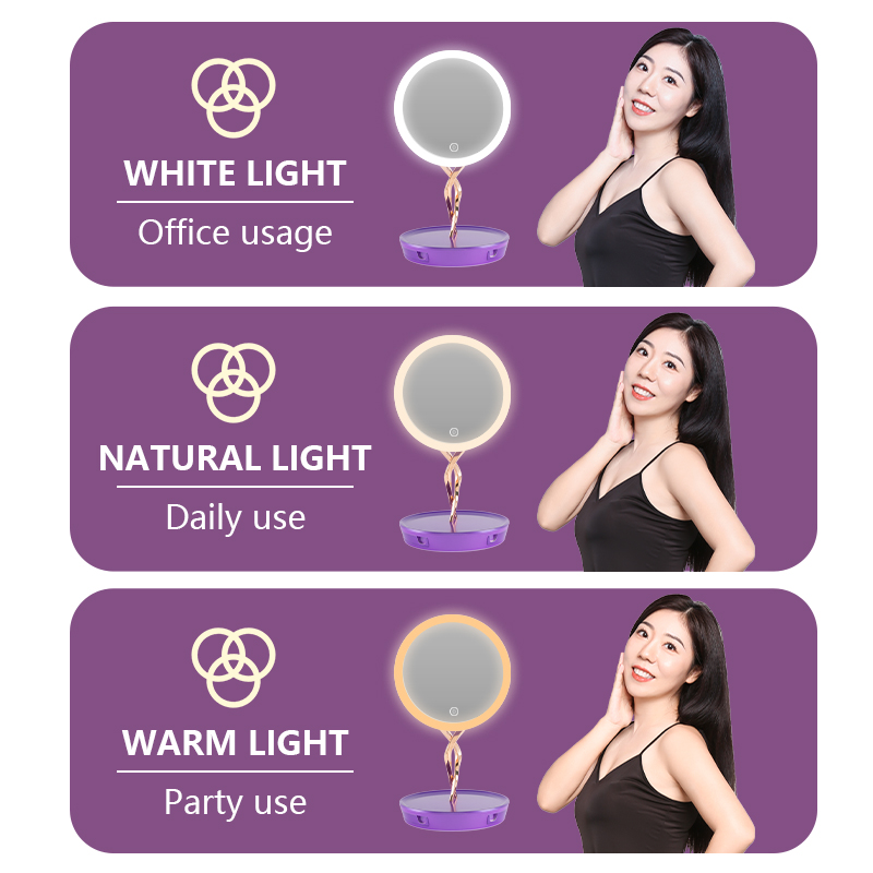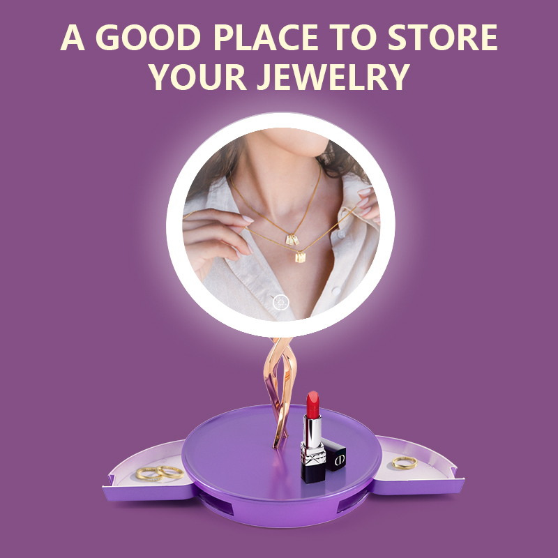 Features professional three-color lighting (cool, warm, and natural light) to accurately reproduce true makeup colors. Its stepless brightness adjustment adapts to every scenario—from your morning skincare routine to late-night makeup removal. The base also includes a built-in storage compartment, perfect for organizing jewelry such as necklaces and earrings.