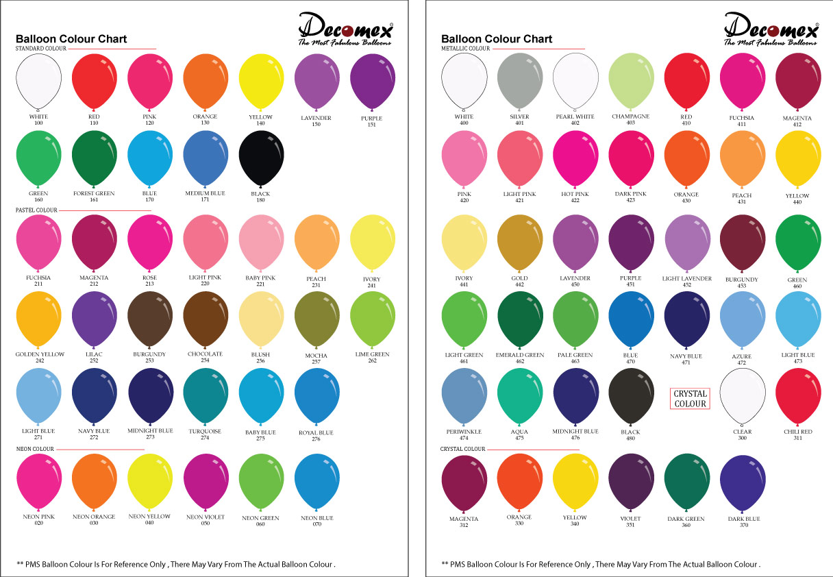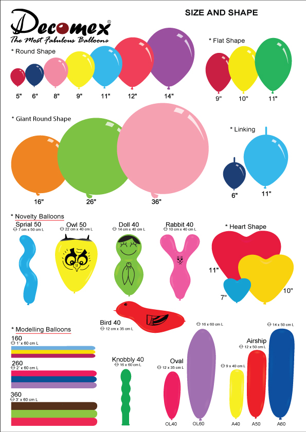 Range Sizes And Shape of Decomex Balloon.