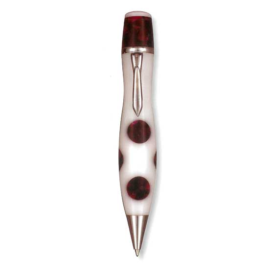 The ballpoint pen features a sleek and streamline barrel with polka dots. It comes with a pen clip for easy attachment. The stylish ballpoint pen makes a great writing instrument for students and office workers.