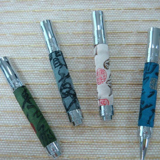 This ballpoint pen features a Chinese calligraphy design theme. The body is delicately wrapped with silk textiles and adorned with calligraphy patterns. The magnetic cap further enhances the pen’s functionality.