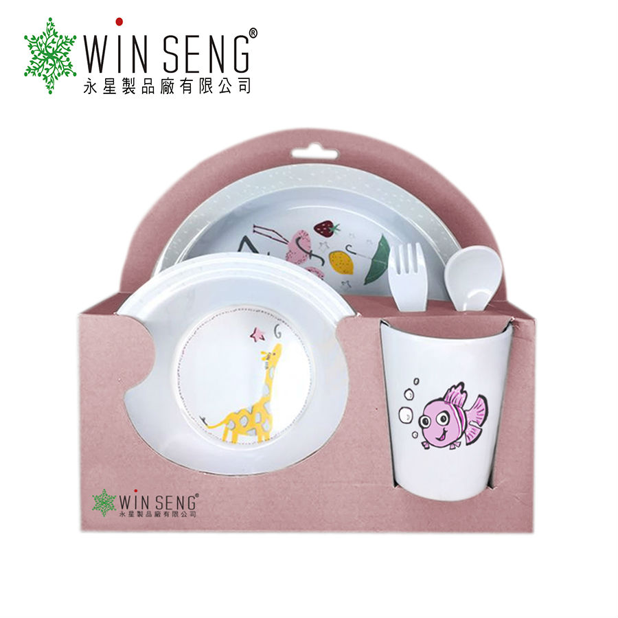 This 5-piece kids’ dinnerware set includes a plate, bowl, cup, fork, and spoon for serving your kid a complete meal. Coming designed with an animal theme, they will grab kids’ attention with a series of delightful animal graphics. Made of eco-friendly bamboo fiber, the pieces are hard to break for safe use.