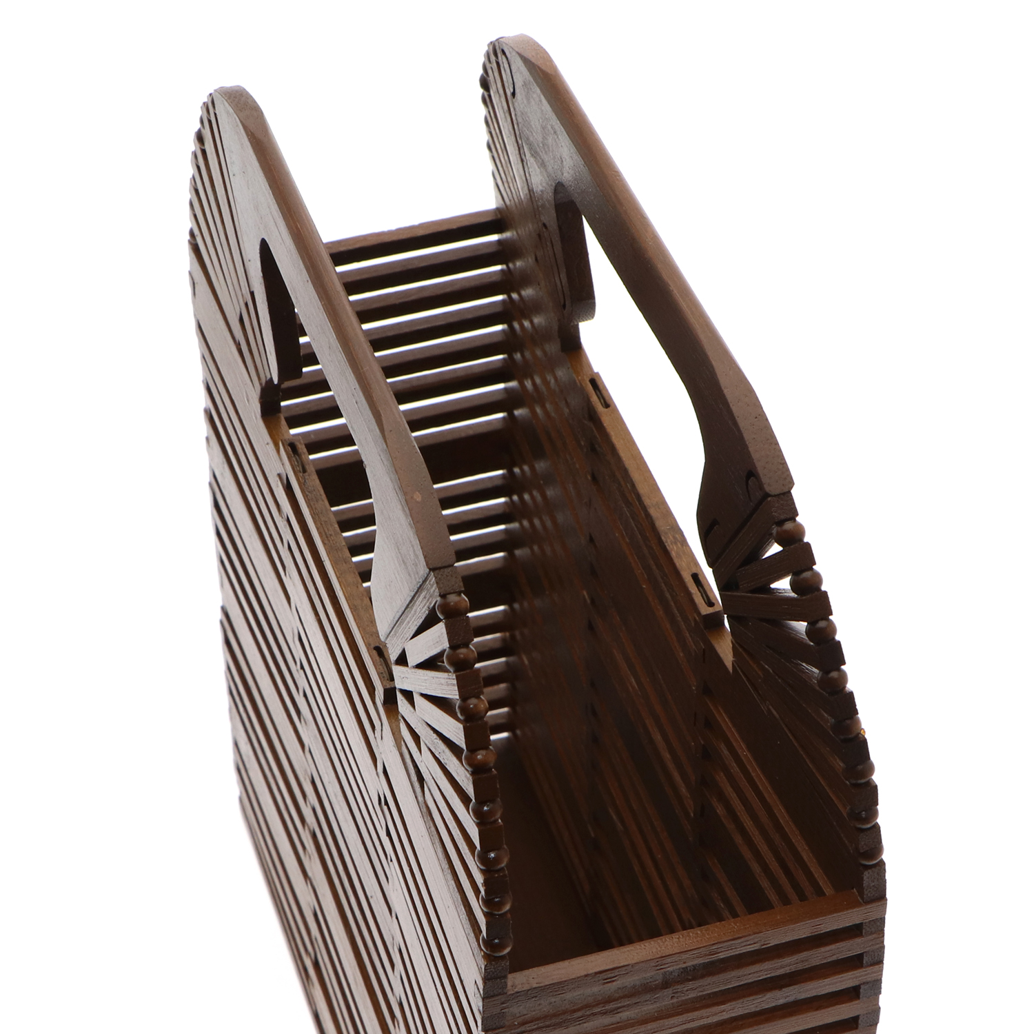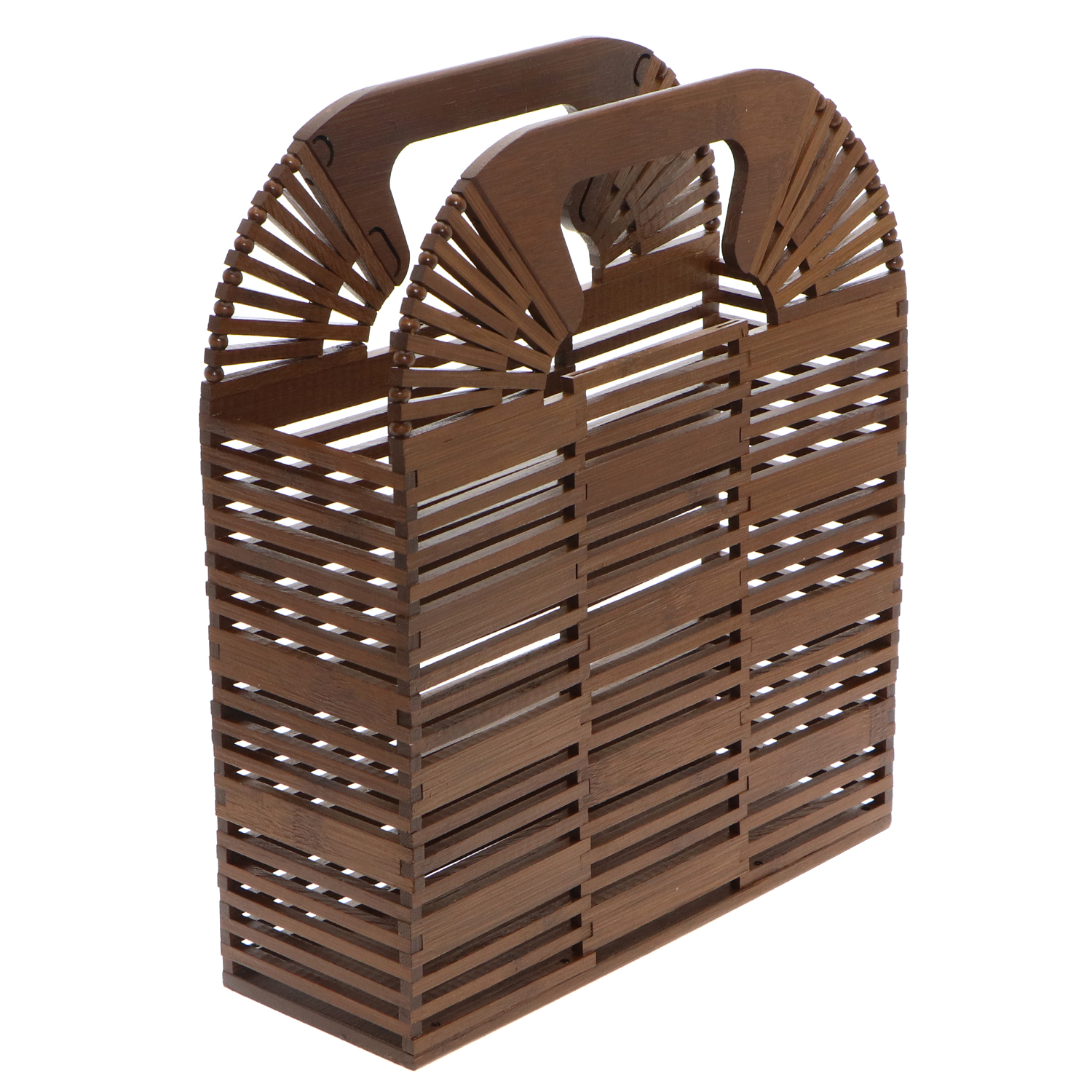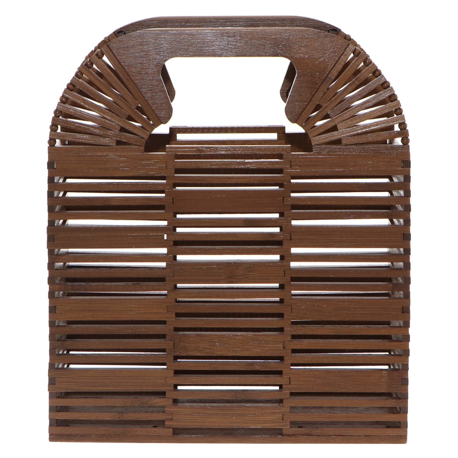 Lend an eye-grabbing accent to your off-duty ensemble with this handbag. Handcrafted to a standard of perfection with scrupulous care, the cage bag frames out a sleek-looking box silhouette by chaining up the bamboo tiles one by one with sturdy fishing lines. Just stash all your personal belongings inside its spacious compartment and your will be a set for a romantic date by the beach.