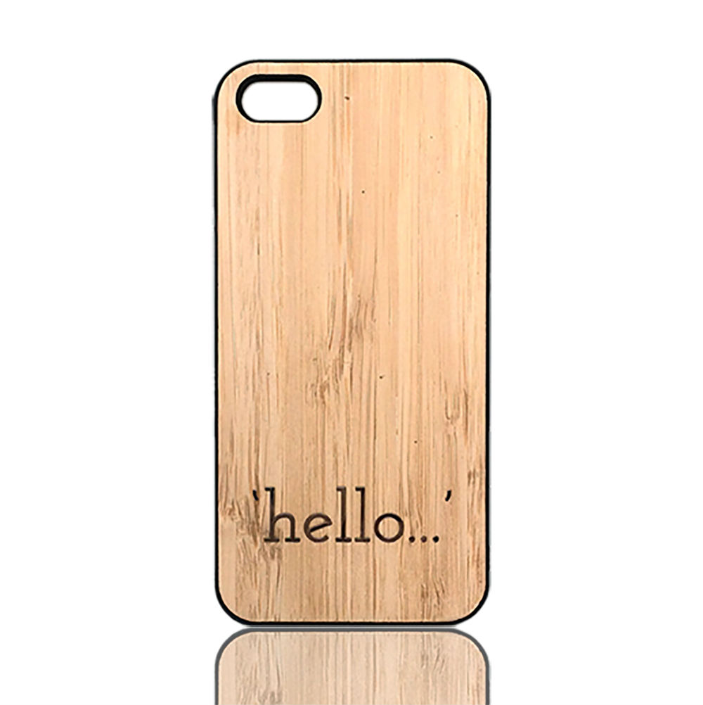 Bamboo phone case with metal logo.