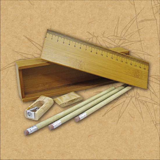 This bamboo stationery set includes 3 pencils, a eraser, a sharpener, a pencil case and so on. The ruler has clear indications for an accurate measurement. This item is an excellent gift for your children.