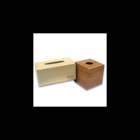 This bamboo tissue box consists of a large bamboo box with a removable lid